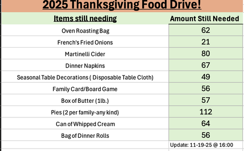 Thank you for helping us bless our community this Thanksgiving. There are a couple of ways you can help out with this drive.